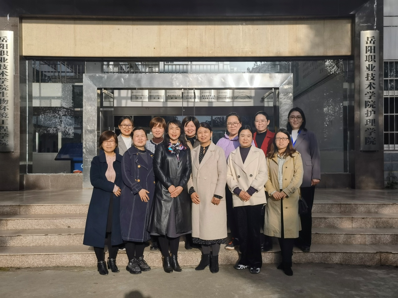 岳阳职业技术学院护理学院院长李习平组织该学院5位副院长李国平、姜娜、陈茵、沈颖惠等以及1位康复教研室主任王丽云和1位专任教师邓媛等相关岗位负责人热情接待,并就双高建设任务进行了深入的交流讨论。双方首先在护理学院二楼党员活动中心召开了交流座谈会。