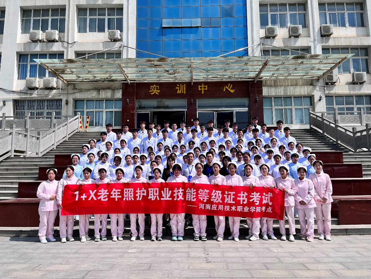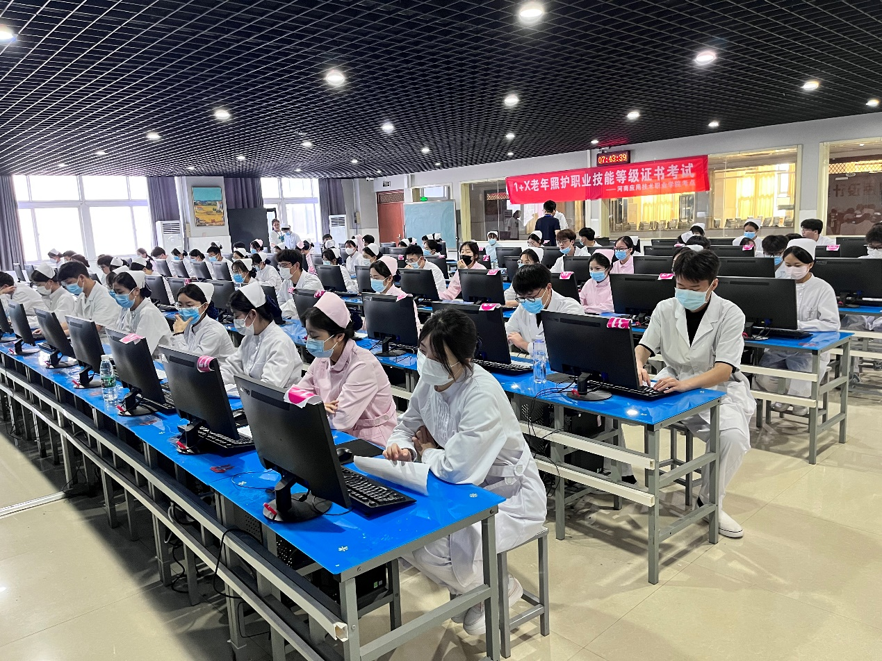 2023年5月14日,河南省职业技能等级考评站试点院校九游体育官方网站“1+X”老年照护2023年5月第一次中级考试在九游体育实训中心顺利举行。护理学院经过认真选拔、精心组织培训、严格考核考评等工作,顺利组织护理专业、老年保健与管理专业及康复治疗技术专业共100名学生参加老年照护职业技能等级证书(中级)考试。