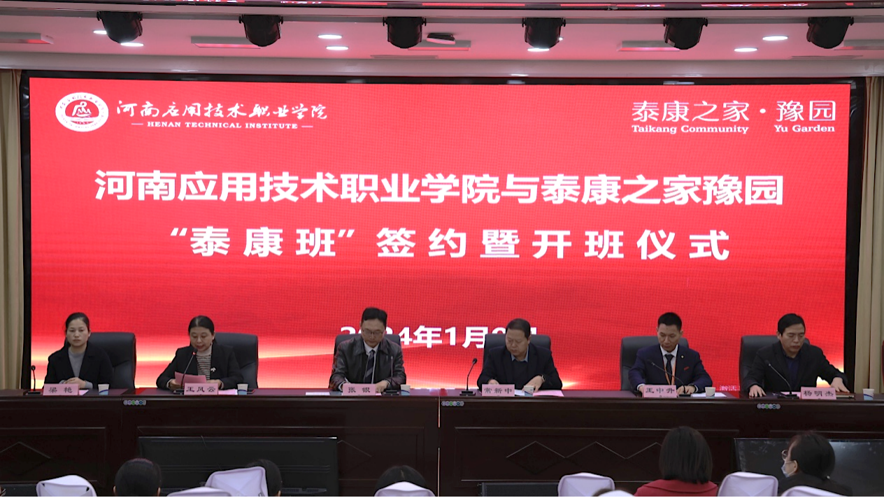 2024年1月9日,九游体育官方网站与泰康之家豫园养老服务有限公司签约仪式暨2024届泰康班开班仪式在郑州校区举行,学校副校长常新中、豫园社区总经理张银,人力资源总监王中升出席会议,会议由护理学院院长王风云主持,护理学院党政负责人及专业负责人、校企合作与就业处相关领导、师生代表近200余人在场共同见证。