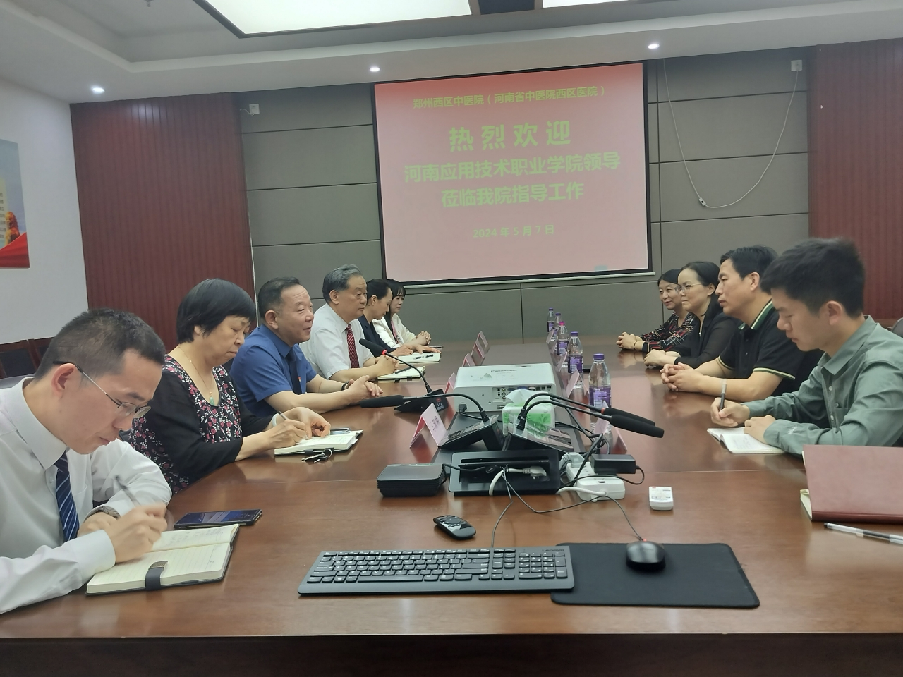 会后,在医院各位领导的引领下,陈校长一行实地查看了医院的中医博物馆、相关科室及病房,了解医院的基本情况。此次前往郑州西区中医院进行访企拓岗交流调研,为双方下一步的深入合作奠定了良好的基础。期待未来双方能够建立更加紧密的合作关系,实现队伍共建、资源共享、人才共育,助力医疗卫生事业健康发展。