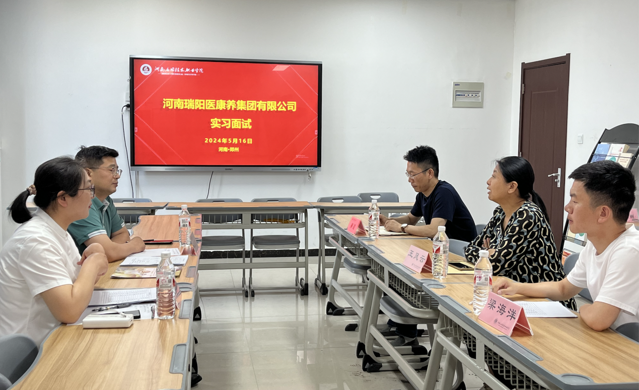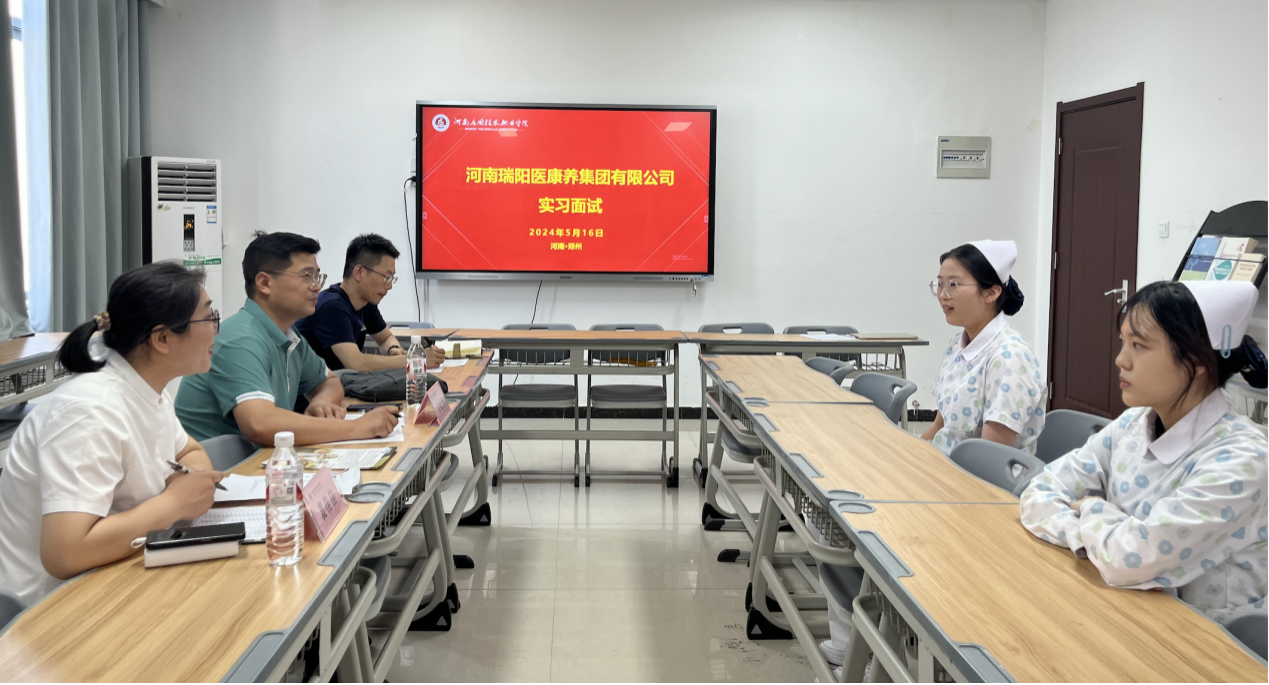 2024年5月16日下午,河南瑞阳医康养集团代表一行来到九游体育官方网站郑州校区,对护理学院老年保健与管理专业的同学们进行了实习面试。此次面试旨在选拔优秀实习生,为他们提供实践与学习的机会,同时进一步加强校企合作,共同培养适应社会需求的医学康养人才。