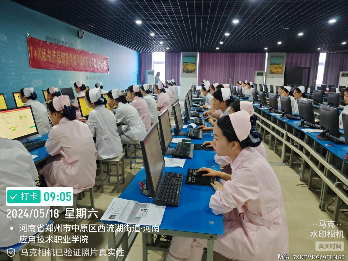上午九点到十点为理论考试,在E楼机房进行,十点半到下午六点为实操考试,在D楼306妇科实训室进行,教务处付永处长对考试进行了视察。