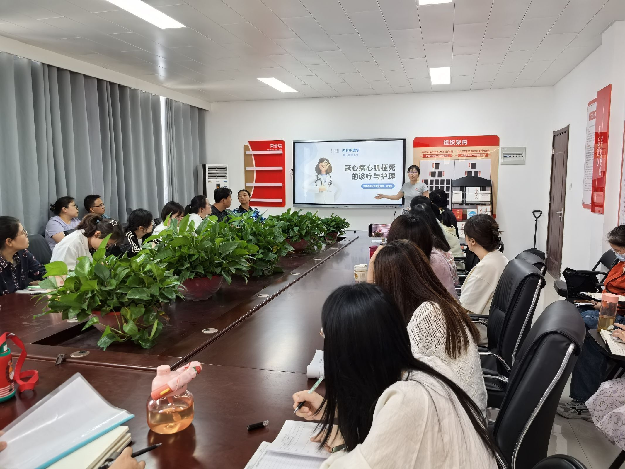 竞赛过程中,七位教师各展所长,精彩纷呈。翟安琪老师以冠心病急救护理为切入点,巧妙运用案例分析法,构建了一个生动逼真的情境化课堂;张家梁老师则借助动态三维模型,将复杂的心血管系统组成直观呈现,令人耳目一新;朱宇老师结合丰富的临床实践数据,深入浅出地解析了心血管生理机制,展现了深厚的专业底蕴。此外,柳超老师针对失智症患者护理的难点,创新设计了教学方案;何婷婷老师利用虚拟仿真技术,精准演示了心电监护操作规范;董莹莹老师通过情景模拟教学,生动展示了噎食急救流程;郑伟老师则聚焦老年慢阻肺患者的呼吸康复护理,提出了个性化的护理方案,赢得了现场阵阵掌声