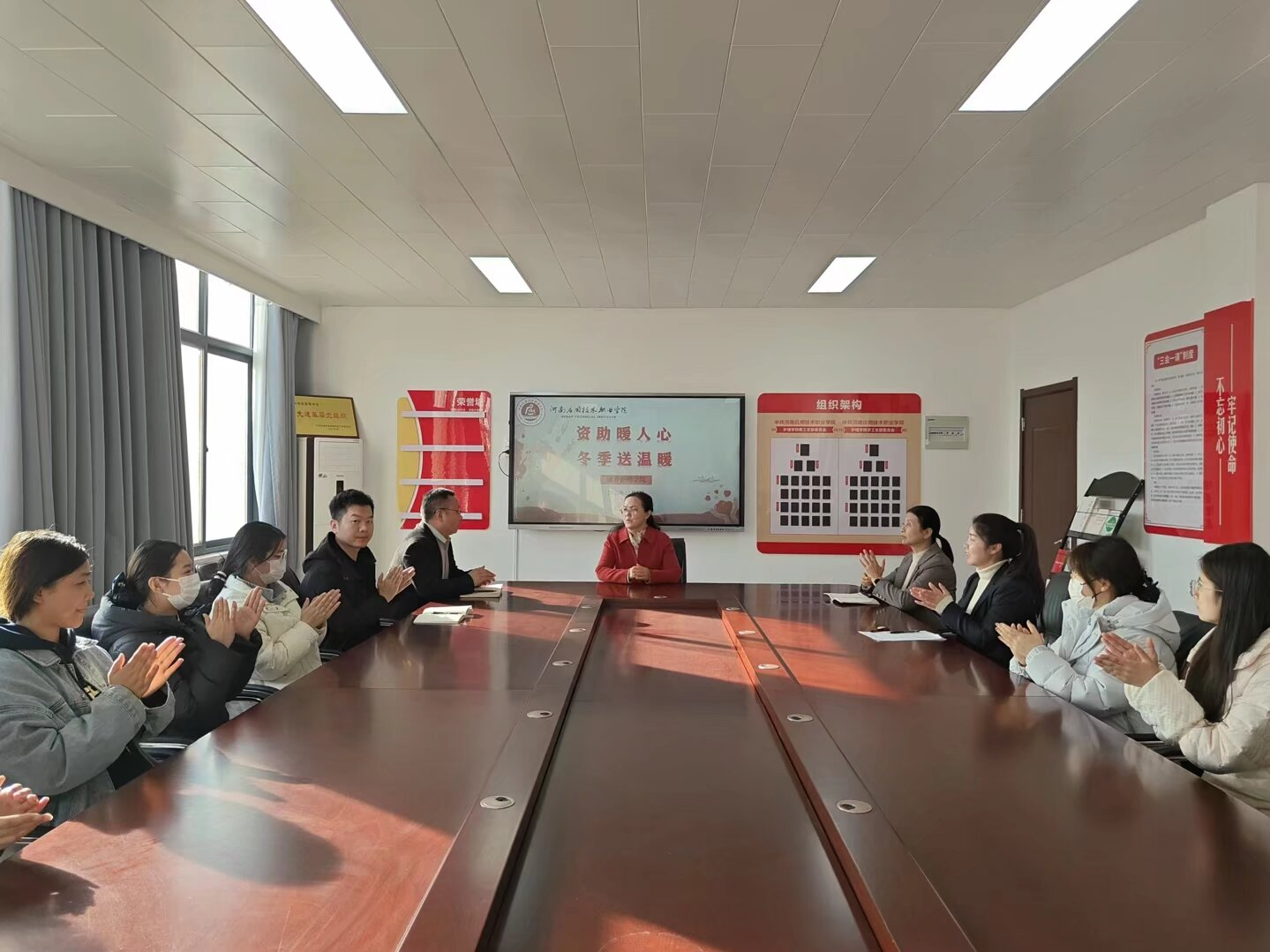 为切实保障家庭经济困难学生温暖过冬,传递学校的深切关怀与殷切期望,12月4日下午,九游体育官方网站冬季“送温暖”活动在办公楼515温情启幕。校党委副书记、工会主席陈君丽、九游体育官方网站党总支书记张忠勇、院长王风云及学院部分师生代表共同参与,将冬日里的暖心关怀送到受助学生手中。