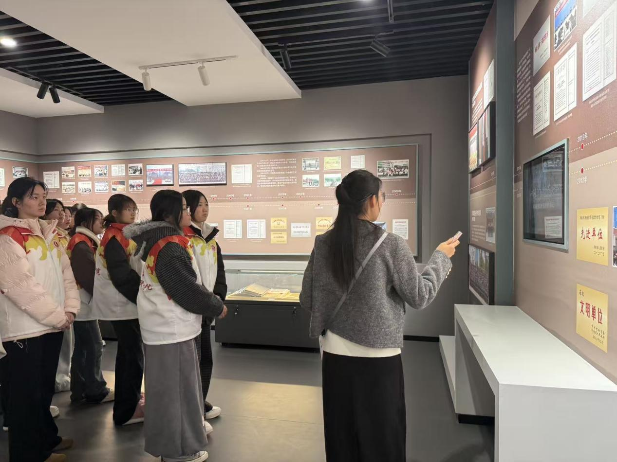 走进校史馆,一张张承载岁月的老照片、一件件见证发展的实物展品、一块块凝聚荣光的荣誉牌匾,生动展现了学校七十年栉风沐雨、砥砺前行的发展历程。在讲解员的细致讲解下,同学们认真聆听校史故事,全面了解学校从艰苦创业到蓬勃发展的光辉历程,深刻领会“厚德 精技 励志 笃行”的校训精神,在历史回望中坚定理想信念、厚植家国情怀与职业担当。