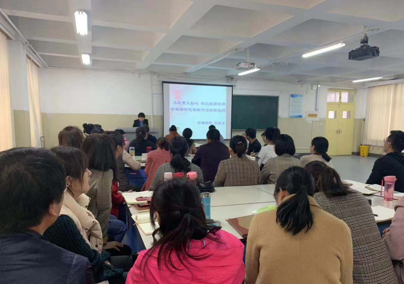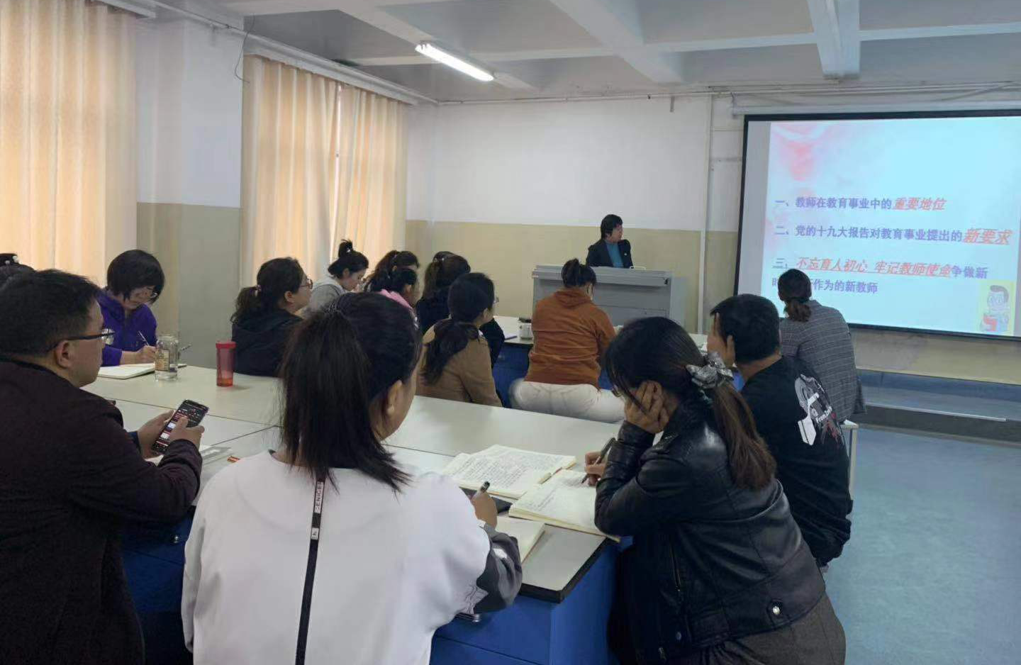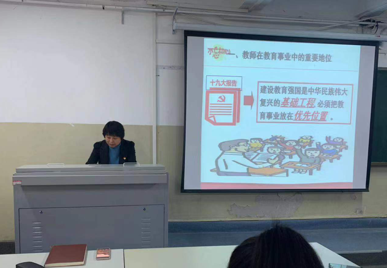王院长以“不忘育人初心,牢记教师使命”为主题,从教师在教育事业中的重要地位、党的十九大报告对教育事业提出的新要求以及不忘育人初心牢记教师使命,争做新时代有新作为的新教师这三个方面,以中华民族五千多年文明发展史上的伟大教育故事为引导,通过汶川地震、教育家苏霍姆林斯基的故事为我们生动形象地讲述了教师所肩负的塑造灵魂、塑造生命、塑造人的时代重任。王院长还讲到,教育大计要以教师为本。党的十九大报告指出,建设教育强国是中华民族伟大复兴的基础工程,必须把教育事业放在优先位置。