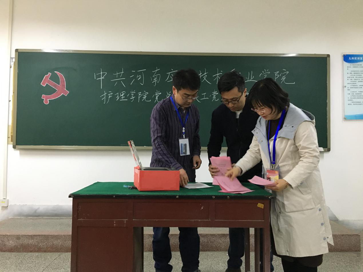 会议严格按照《中国共产党章程》、《中国共产党基层组织选举工作暂行条例》和《中国共产党支部工作条例(试行)》以及上级党组织的有关规定进行,护理学院学生党支部全体党员参加了会议,到会人数符合党章和基层党组织换届选举的相应规定。会议开始,首先由王风云同志通报了教工支部换届的情况,并代表支委向支部全体党员做了工作汇报,全面总结了支部近四年活动开展、自身建设等情况,指出不足的同时也对未来的工作进行了展望。随后会议宣读了选举办法和候选人名单,推选了监票人、计票人名单。在投票环节中,支部严格按照公平、公正、公开的原则,由专门监票人和计票人唱票并宣读结果。经党员大会无记名、差额投票,王风云、李俊艳、邢雅旭等三名同志当选为教工支部新一届委员会委员。