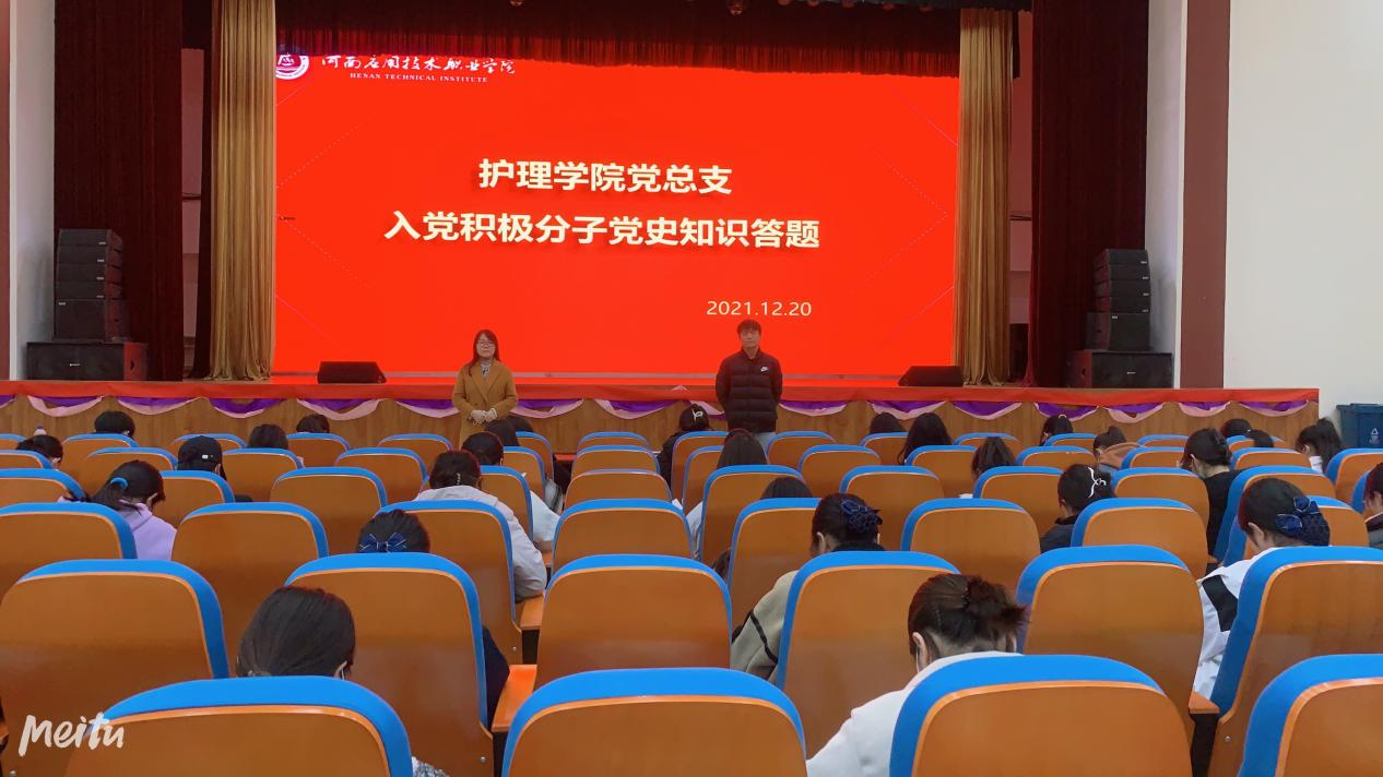 为深入学习贯彻习近平新时代中国特色社会主义思想,不断提高入党积极分子的思想政治理论水平。2021年12月20日,护理学院党总支开展入党积极分子党史知识答题活动,本次活动由景淼、刘思阳老师组织,共207名入党积极分子参与。