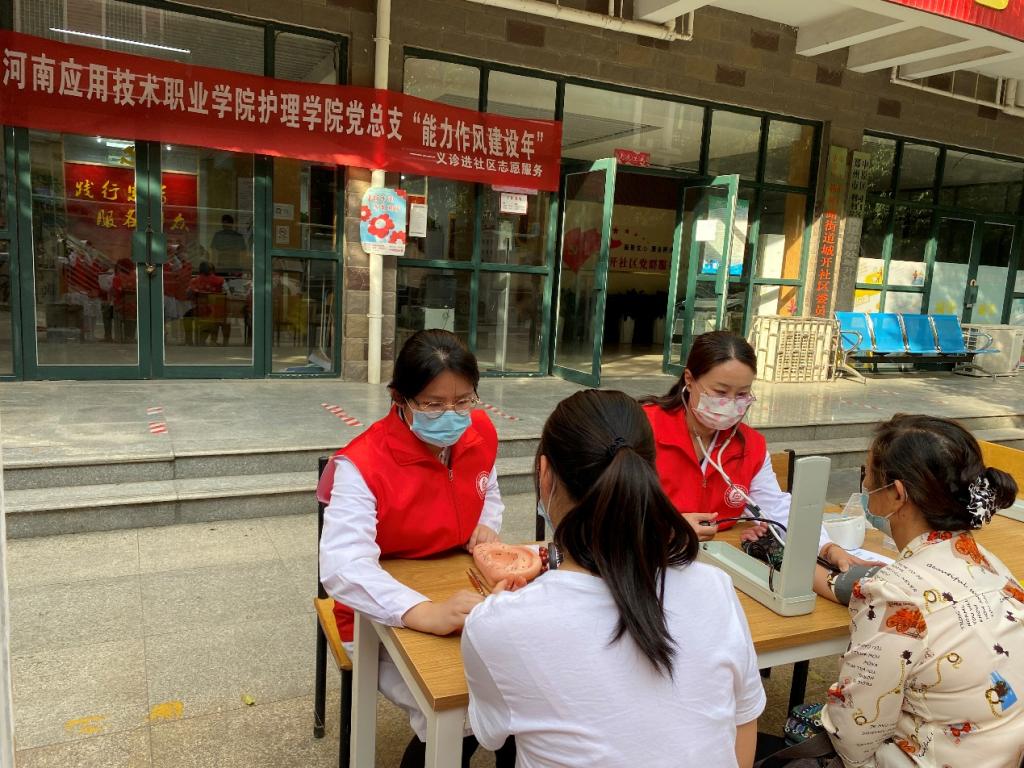 为扎实开展“能力作风建设年”活动,密切联系群众,2022年9月20日下午,护理学院党总支组织教工党员及学生党员到郑州市中原区城开社区,举办“能力作风建设年—义诊服务进社区”主题党日志愿服务活动。