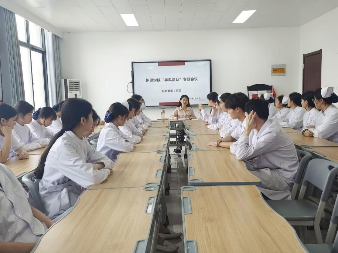 为了从源头端正学风、净化学风、提升学风,护理学院党总支纪检委员姚颖于2023年5月10日组织召开“学风清新”专题会议,2021级和2022级全体学习委员参加了会议。