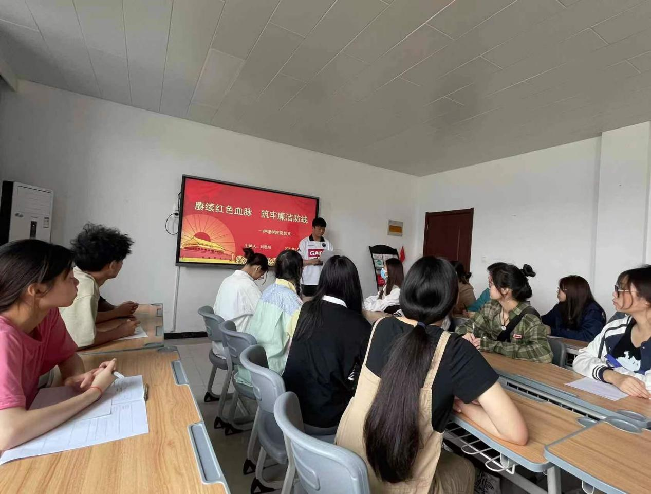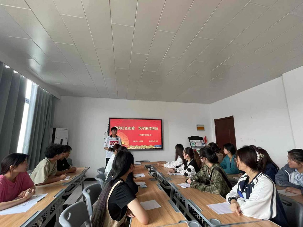 为深入推进清廉学校建设,确保清廉因子在师生中有效延伸,6月5日上午,护理学院党总支组织开展以“赓续红色血脉,筑牢廉洁防线”为主题的廉洁党课活动,此次党课由护理学院党总支青年委员刘思阳讲授。