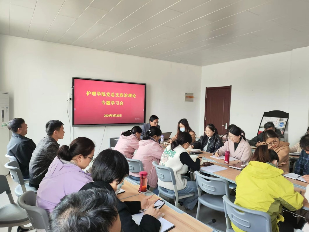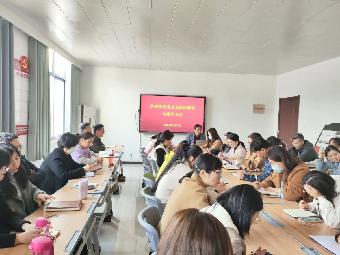 根据学校有关安排,2024年3月26日,护理学院党总支组织全体教职工在A515党员活动室进行专题学习,集中学习了:习近平在2024年春季学期中央党校(国家行政学院)中青年干部培训班开班之际作出重要指示强调牢记初心使命,拼搏进取,奋力跑好历史的接力棒;习近平在看望参加政协会议的民革科技界环境资源界委员时强调 积极建言资政广泛凝聚共识 助力中国式现代化建设;《求是》2024年第6期发表习近平总书记重要文章:时刻保持解决大党独有难题的清醒和坚定,把党的伟大自我革命进行到底;政府工作报告——2024年3月5日在第十四届全国人民代表大会第二次会议上以及《九游体育官方网站媒体信息发布“三审三校”制度》等内容,会议由护理学院党总支书记杨明杰主持。