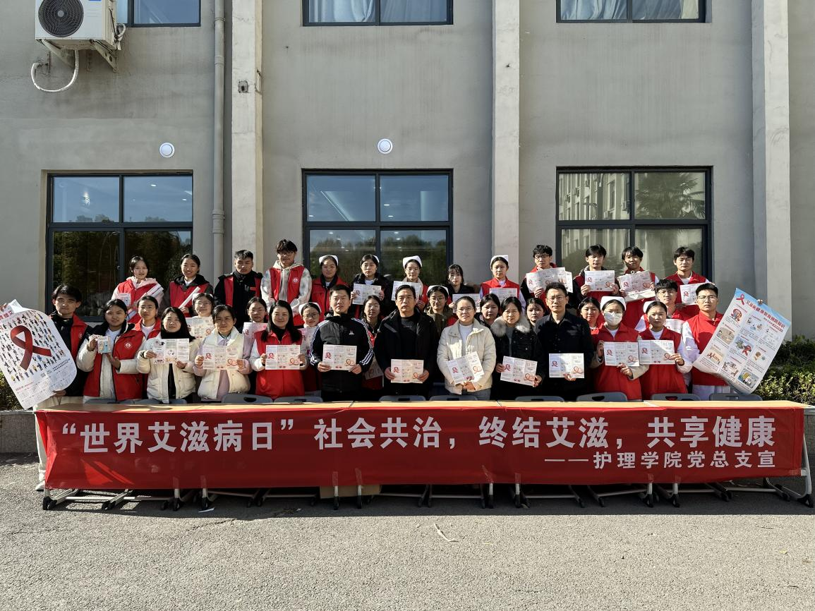 2024年12月1日,在第37个世界艾滋病日到来之际,护理学院党总支组织教师党员与入党积极分子于11月26日开展“社会共治,终结艾滋,共享健康”主题党日活动,本次活动将党员与入党积极分子先锋力量融入防艾宣传工作中,传递温暖与知识,彰显使命与担当。