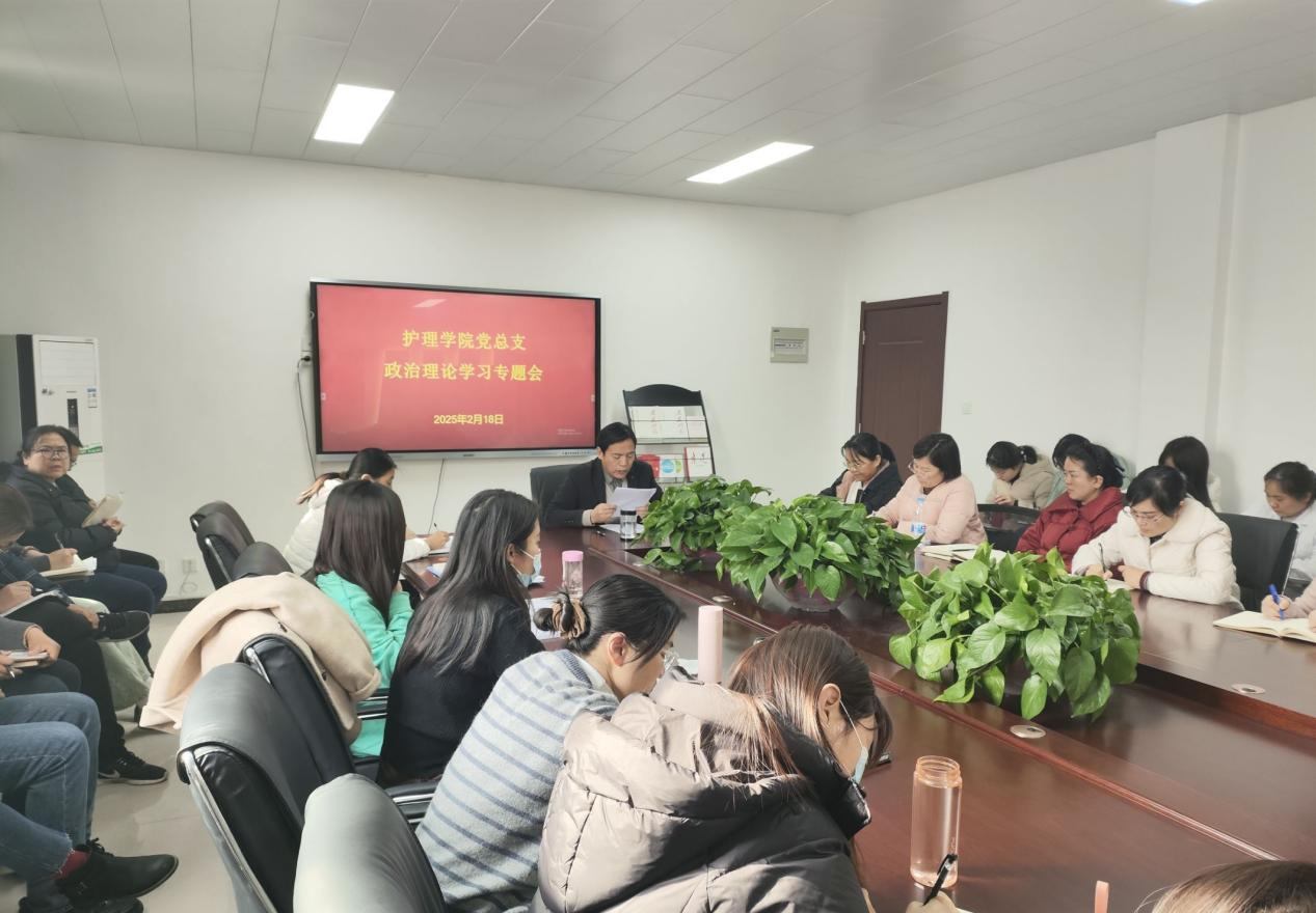 根据学校安排,2025年2月18日,护理学院党总支组织全体教职工在A515开展政治理论专题学习。此次学习旨在深入贯彻党的二十届三中全会精神,学习习近平总书记在《求是》杂志发表的重要文章以及中共中央 国务院印发的相关文件,进一步推动全面从严治党体系建设和教育强国建设。会议由护理学院党总支书记杨明杰主持。