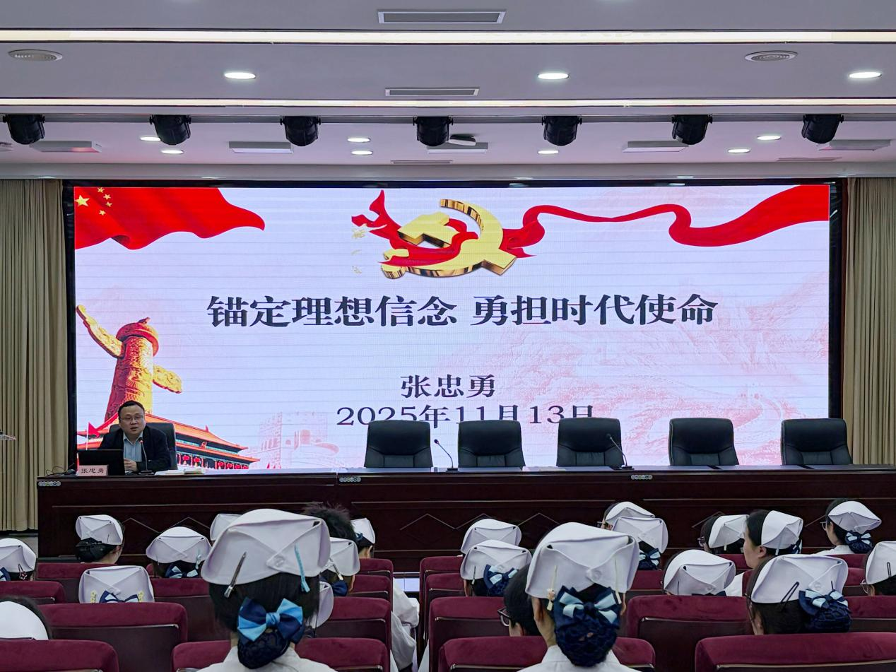 开班仪式结束后,张忠勇以《锚定理想信念,勇担时代使命》为题,为全体学员讲授了“开班第一课”。党课以《大学》“大学之道,在明明德,在亲民,在止于至善”为引,阐释大学作为“研究学问、追求真理、培养人才”的核心使命,青年学生既要习得科学文化知识,更要树立远大理想、锤炼过硬品格。他强调,要做坚定的共产主义信仰者,通过强化理论学习筑牢思想根基,在实践中践行信仰初心;要深刻领悟“中国梦”“两个一百年”奋斗目标、社会主义核心价值观等重要内涵,将个人发展融入国家建设大局;最后寄语青年学子,以“勤学”练就过硬本领、以“自强”矢志艰苦奋斗、以“创新”勇于开拓进取、以“笃实”坚持求真务实。