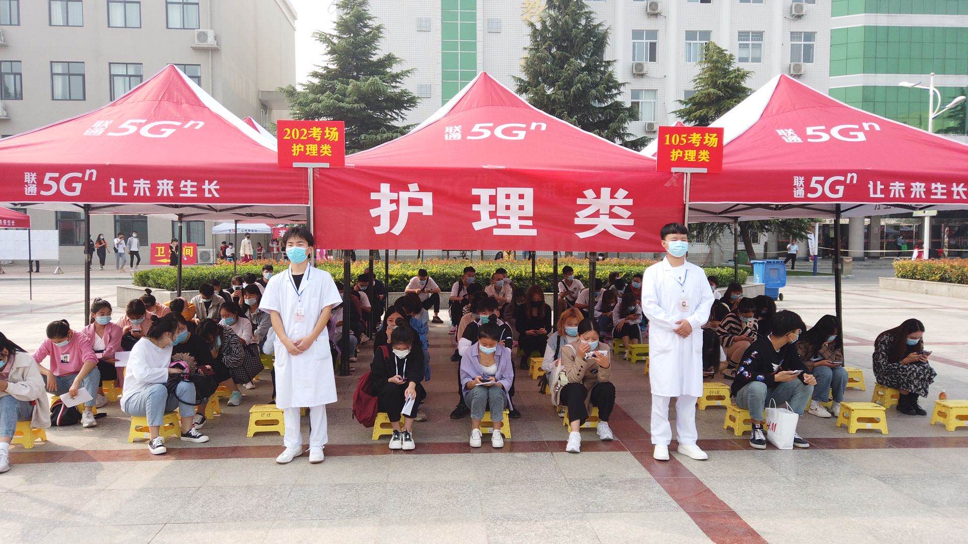 考试当天,在护理学院徐娟书记,王风云院长,陈永惠院长的带领下,以及各位老师和团学会学生干部的积极配合下,组织考生依次按要求进行身份核查,并沿指示路线前往考场进行考试。入校考生均全程佩戴口罩,同时在护理学院候考区设置临时观察点,在严抓考风考纪的同时,确保每一位考生的安全,做到考试与防疫两不误。当日在考试现场,考生们沉着应考,监考老师严肃负责,在各位老师和学生干部的协调配合下,本次单招考试工作井然有序的顺利完成。