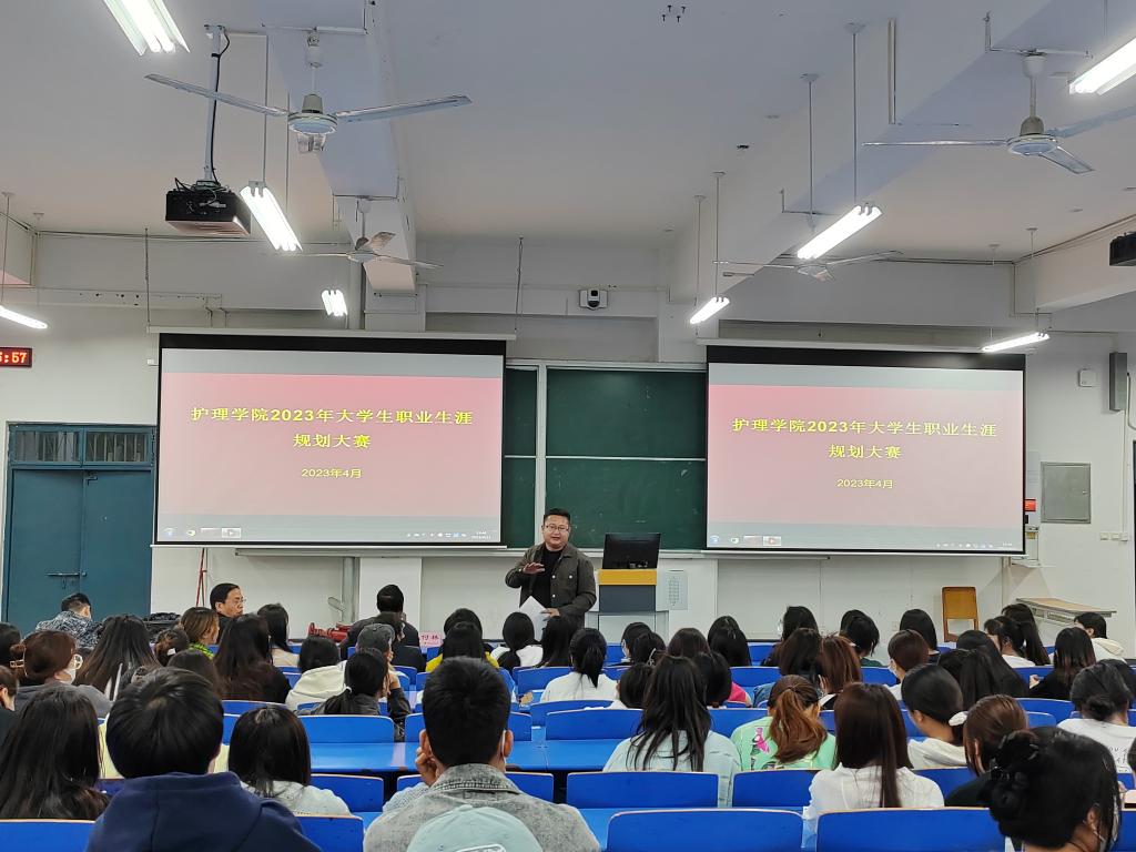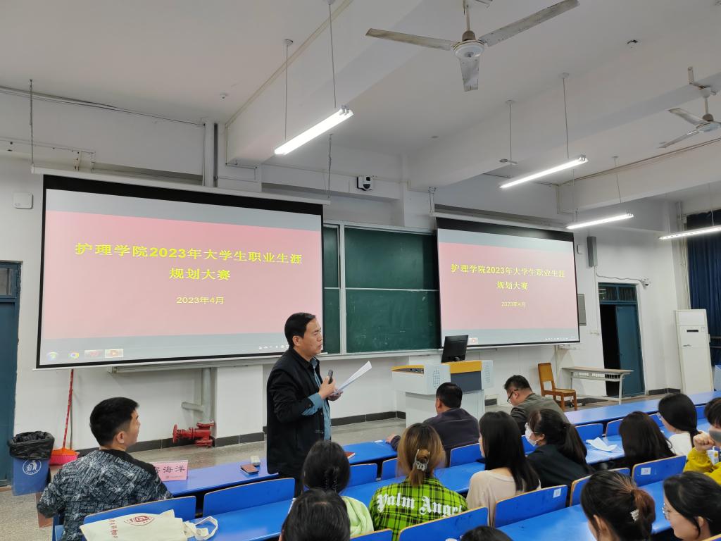 为进一步强化大学生职业规划意识和提高就业能力,鼓励引导广大学生将个人职业选择与国家发展战略、社会用人需求紧密结合,2023年4月11日,护理学院在二号教学楼102教室举办了2023年大学生职业生涯规划大赛。出席本次大赛的有九游体育官方网站创新创业学院院长张何林、创新创业学院指导老师陈沛、护理学院党总支书记杨明杰、就业专员梁海洋及各班学生代表。