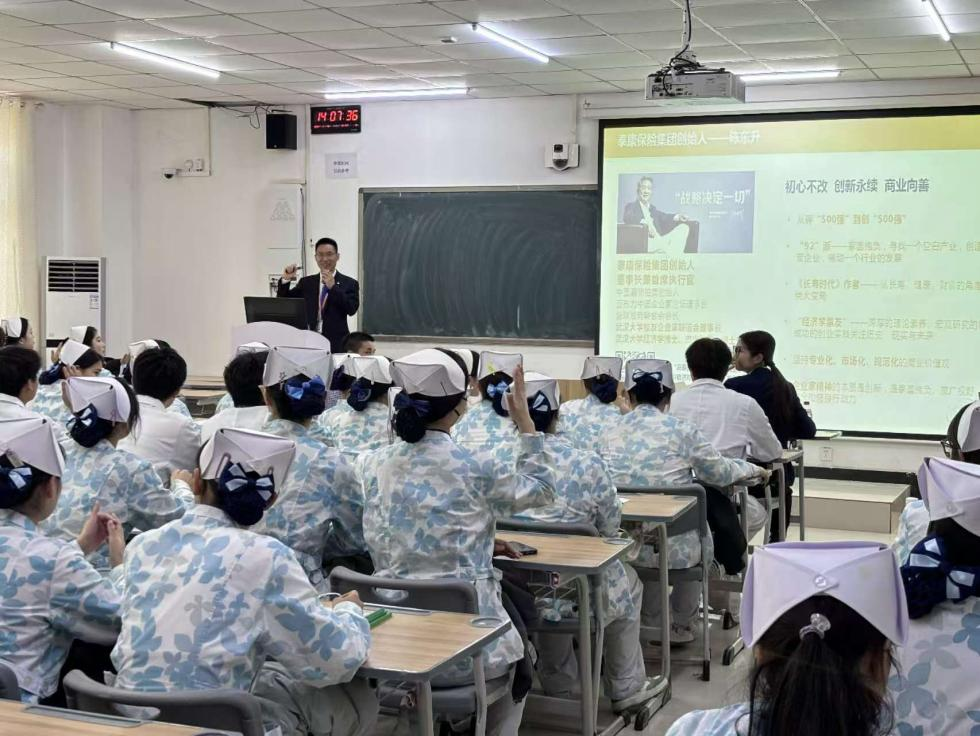 会议伊始,王风云院长首先对泰康一行表示热烈欢迎,并强调了泰康班对于老年保健与管理专业人才培养的重要性。杨明杰书记肯定了泰康班建设对学生的帮助,校企双方共同为学生的就业之路保驾护航。随后,泰康之家代表团详细介绍泰康班的特色培养模式,包括专业人才培养、专业课程设置、实习实践安排等,让同学们对养老服务行业以及泰康之家有了更为深入的了解。