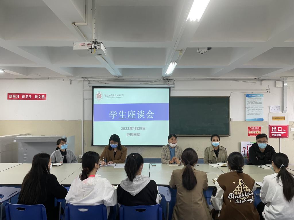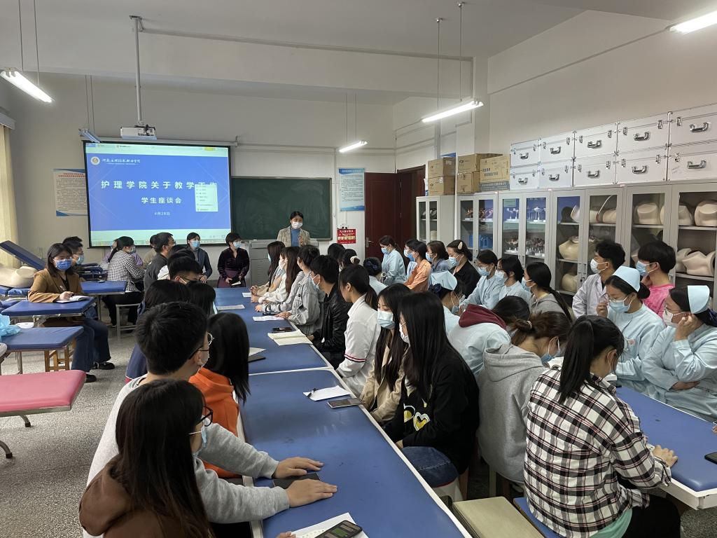 为深入贯彻落实学校《关于开展“能力作风建设年”活动实施方案》要求,进一步完善教学管理,提高教学质量,树立严谨教风,培育优良学风,护理学院于4月28日在D306、D207组织召开2021-2022-2学期期中教学工作学生座谈会。护理学院院长王风云主持会议,教研室主任、教务办公室成员、任课教师代表以及20、21级各班92名学生代表参加。