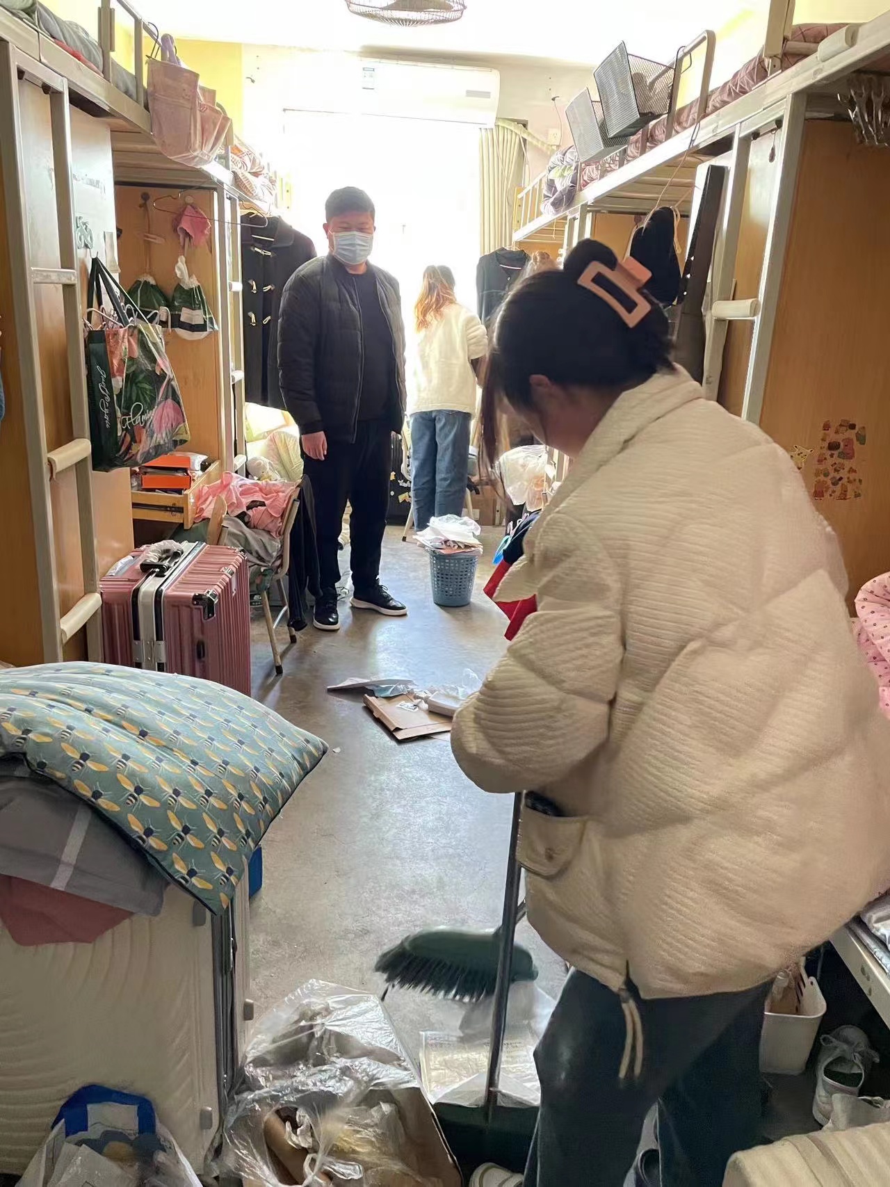 返校过后,辅导员深入学生宿舍了解学生到校情况、排查宿舍安全隐患,引导同学们养成良好的生活习惯,要求大家疫情防控时刻不放松,戴口罩、勤洗手、多通风、讲卫生,预防春季传染病等,鼓励学生们多看书多运动,做好新学期规划。同时认真听取学生各方面意见和建议,并就人身财产安全、宿舍管理、预防网络诈骗等相关工作进行了着重强调,鼓励同学们保持积极心态,以饱满的热情投入到新学期的学习生活中。