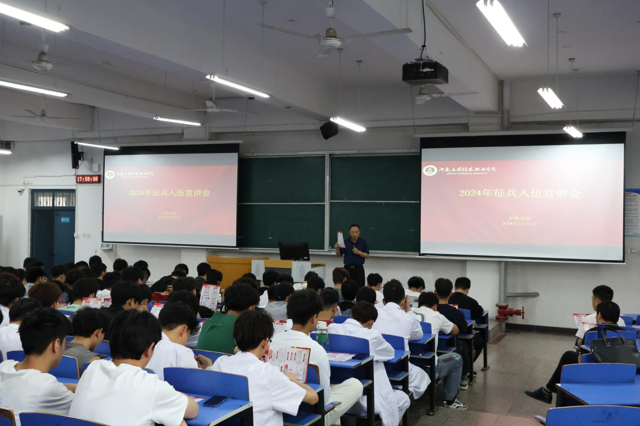 青春,是热血的代名词;报国,是青春的至高荣誉!2024年5月16日,护理学院在B101召开2024年征兵宣讲会。这次宣讲会旨在向广大学生普及国防知识,激发爱国情怀,引导学生积极参与国防建设,服务国家和人民。九游体育官方网站武装部胡平、宋春磊出席会议,护理学院2022级全体男生参会,宣讲会由护理学院党总支书记杨明杰主持。