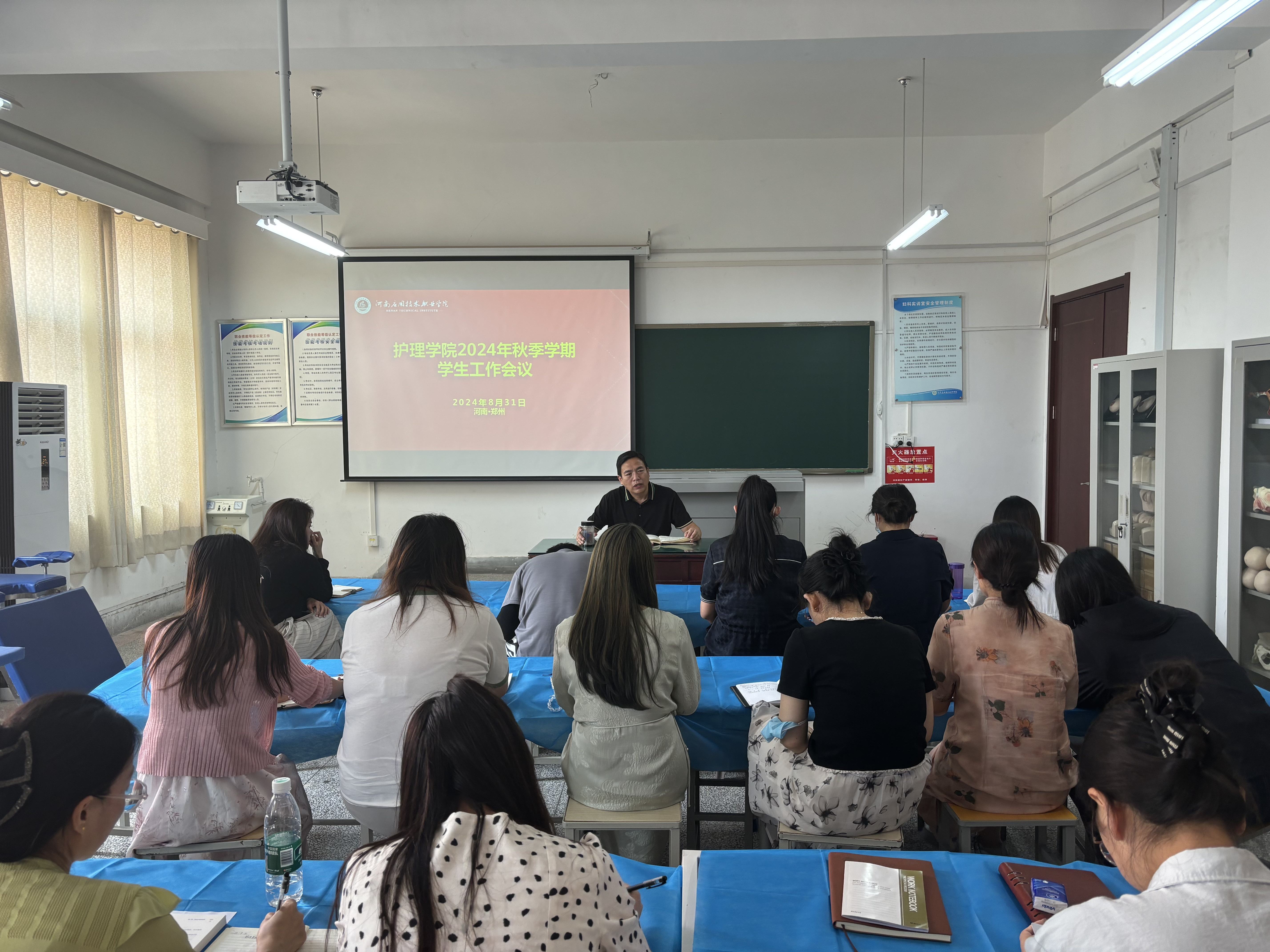 为了全面部署和规划新学期学生工作,确保学生教育管理服务工作的顺利开展,8月31日下午,护理学院组织全体辅导员在D306召开2024年秋季学期学生工作会议。会议由护理学院党总支书记杨明杰主持。