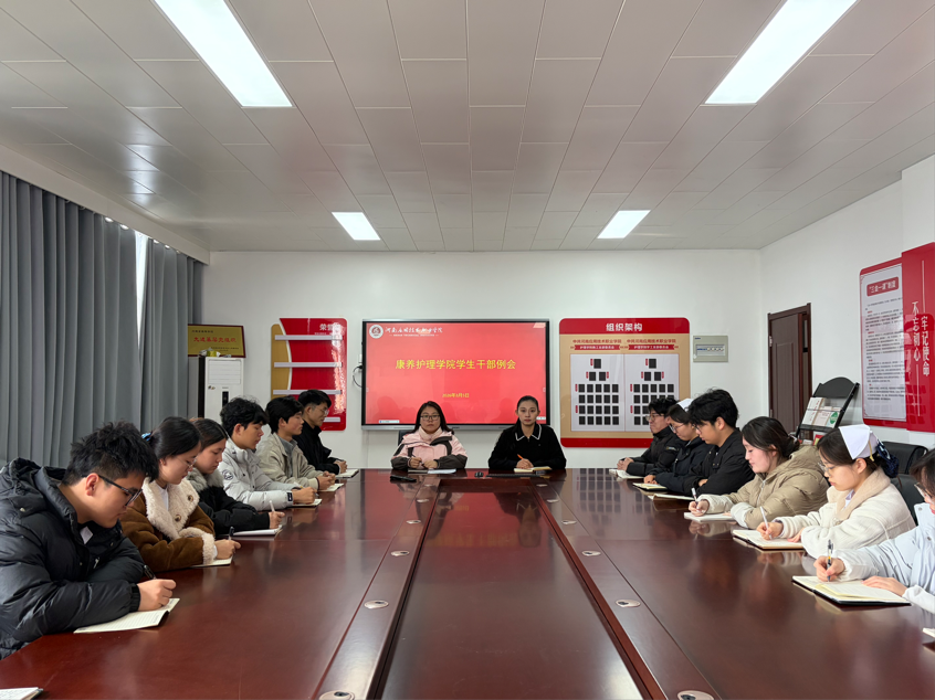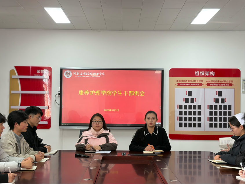 会议紧扣新学期学生工作核心任务,围绕工作总体部署、团学组织建设、学风建设、校园文化活动开展、安全稳定与日常管理等重点议题展开。会议伊始,张萌对寒假“返家乡”社会实践活动成果进行全面总结,并对新学期重点工作出细化部署。她强调,各部门要强化协同联动,统筹推进雷锋精神宣传月系列活动,细化流程环节、压实责任分工,确保活动落地见效;要聚焦运动会筹备关键节点,全力推进开幕式策划、选手筛选等工作,充分展现康养护理学子昂扬向上的青春风貌与团结协作的团队精神。