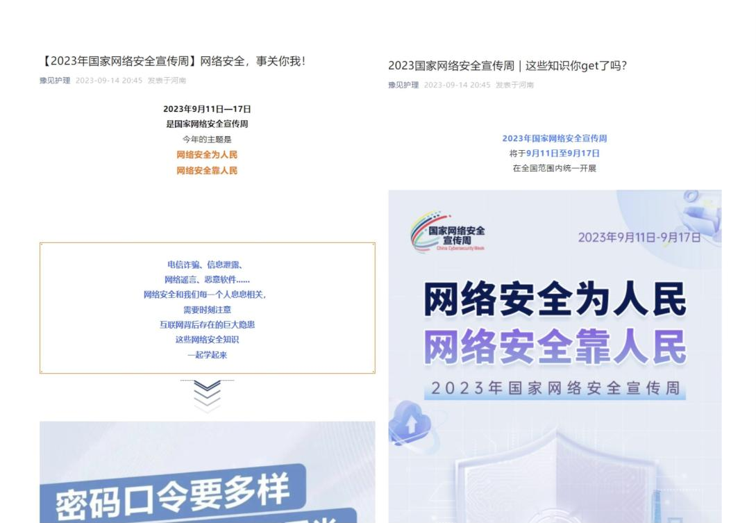 根据《九游体育官方网站关于组织开展2023年国家网络安全宣传周河南省校园日活动的通知》要求,护理学院党总支积极行动, 从9月11日开始开展为期七天的“2023年国家网络安全宣传周河南省校园日活动”。
