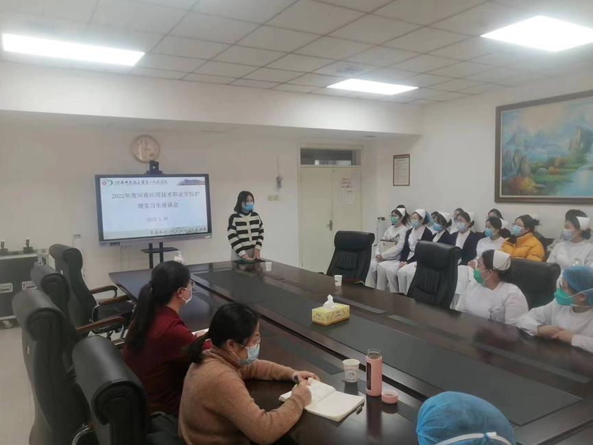 2023年2月27日下午,实习指导教师温晓丽、刘常鹏老师到河南中医药大学第三附属医院检查走访我院岗位实习学生,中医药大学第三附属医院护理部主任张晓黎和实习负责人马明睿组织召开了实习生座谈会。